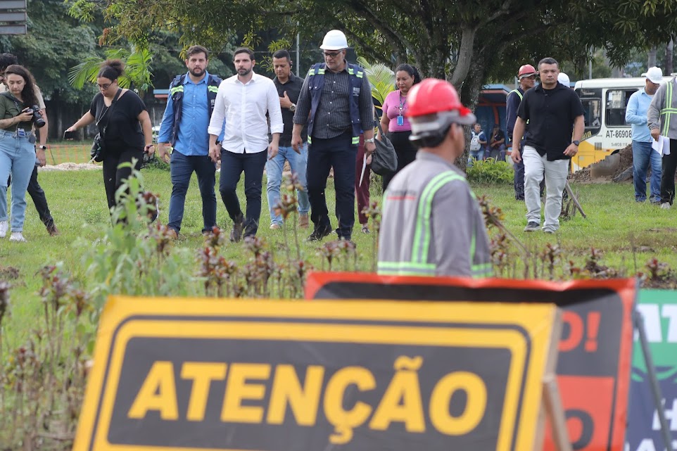 O prefeito Igor Normando vistoriou, na tarde dessa segunda-feira (28), o andamento das obras de urbanização da avenida Júlio César. O projeto engloba a construção do BRT Centenário, a estação de passageiros para embarque no BRT, pavimentação asfáltica, implantação de ciclovias, calçada, sinalização e drenagem do Igarapé Val-de-Cans.